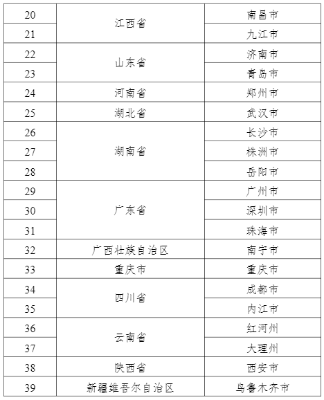 名單包括,石家莊市、雄安新區(qū)、浦東新區(qū)、南京市、蘇州市、杭州市、廣州市、深圳市等39個(gè)城市。