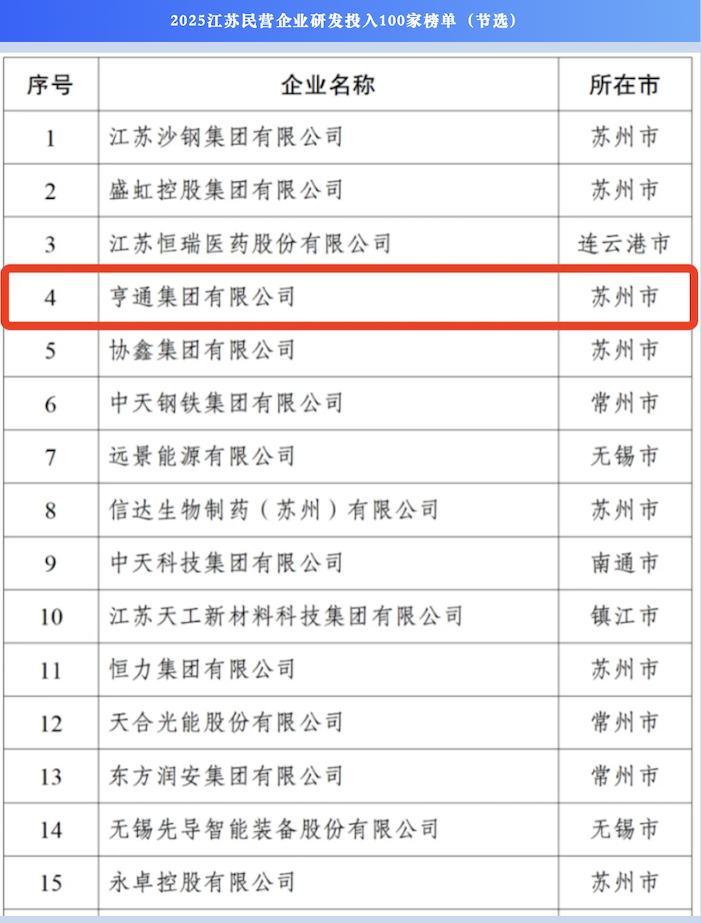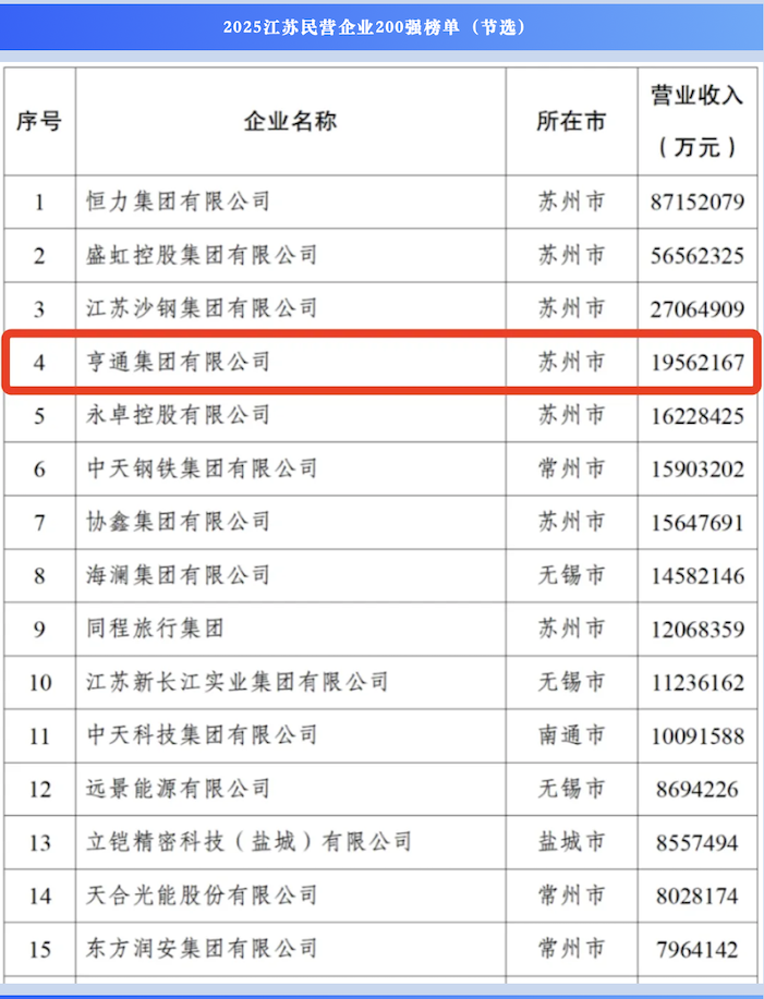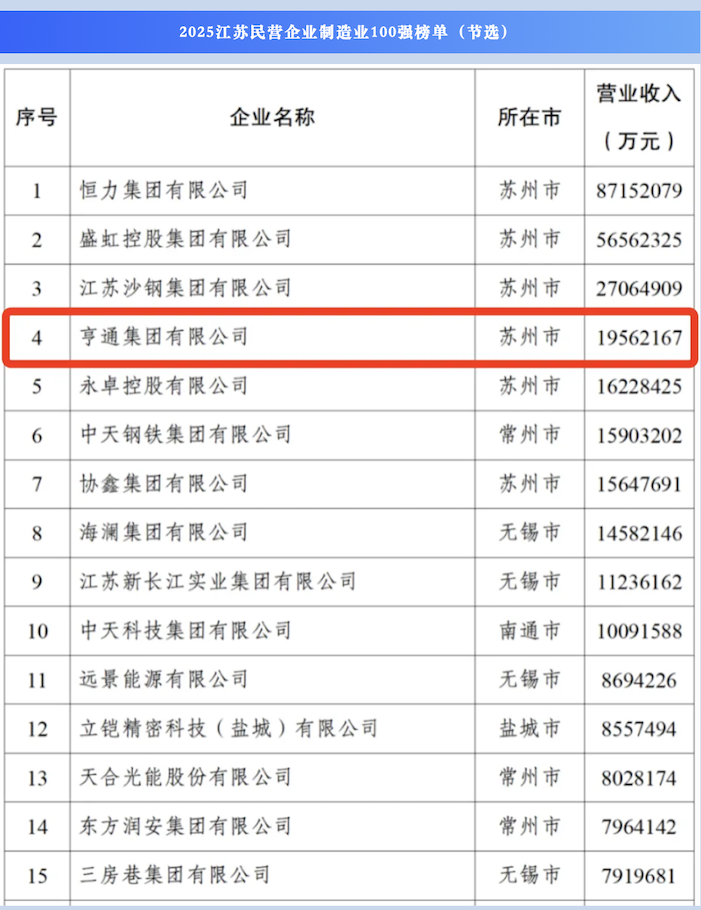 再進(jìn)一步!亨通榮登2025江蘇民企百?gòu)?qiáng)第4位