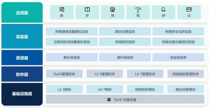 DarSi通信網(wǎng)絡與網(wǎng)絡安全教育實驗平臺架構如下: