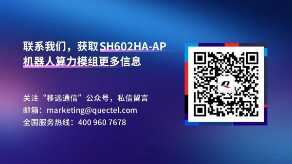 移遠通信COO張棟表示:“從割草機、掃地機等家用服務設備,到前沿的人形機器人,各類形態(tài)的機器人正深刻重塑人類生產(chǎn)生活方式。移遠始終致力于為智能機器人打造堅實的端側算力與通信基座,而SH602HA-AP模組的推出,不僅實現(xiàn)了算力、感知的雙重升級,更關鍵的是大幅降低了高端智能機器人的開發(fā)門檻,為行業(yè)創(chuàng)新注入核心動力。”