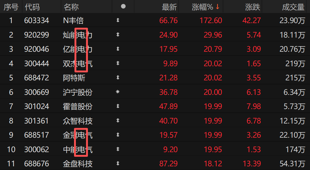 電力設備概念股集體爆發(fā),包括雙杰電氣(9.890, 0.00, 0.00%)、特變電工(24.110, 0.00, 0.00%)、保變電氣(9.910, 0.00, 0.00%)、太陽電纜(7.240, 0.00, 0.00%)在內(nèi)共計十余股漲停?v觀今日漲幅榜,多只證券簡稱中含有“電”字的個股位居前列。