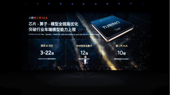 落地到車端,考驗的是 “軟硬協(xié)同” 的真功夫。小鵬為圖靈 AI 芯片重新開發(fā)了編譯器和軟件棧,通過 “芯片 - 算子 - 模型” 全鏈路優(yōu)化,最終在 2250TOPS 算力的 Ultra 版車型上,塞進了數(shù)十億級參數(shù)的第二代 VLA—— 要知道,目前行業(yè)車端模型的參數(shù)量普遍只有千萬級。