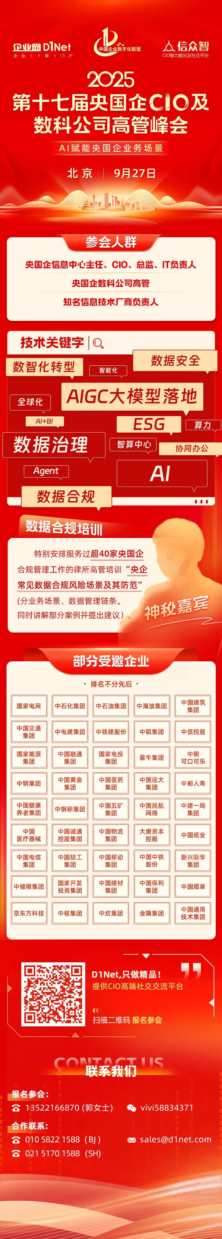 2025年第十七屆央國企CIO及數(shù)科公司高管峰會 將于9月27日在北京召開