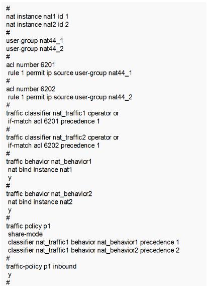 UP側配置兩個NAT實例,port-range為1600,每個實例配置1024個公網地址,分別對應Bras業(yè)務板上下子卡的各10個用戶接入端口;CP側配置相應NAT實例、user-group、acl、cb對、上線域等。關鍵配置如下: