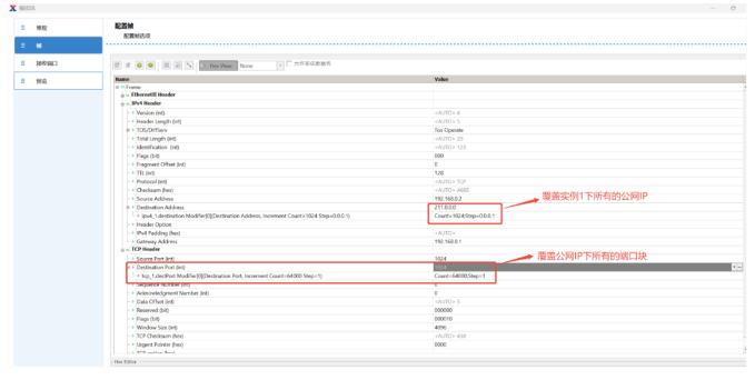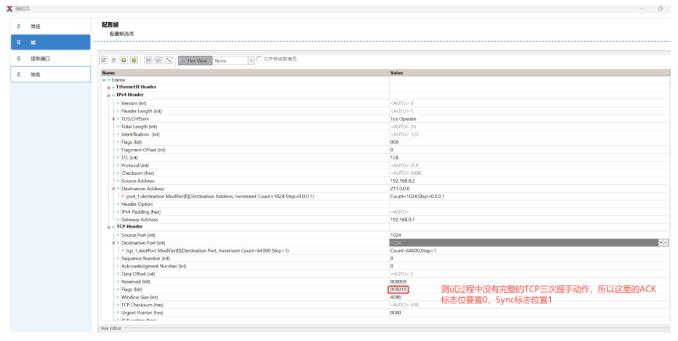 創(chuàng)建用戶側到網絡側的上行流量,添加UDP/TCP頭,設置源端口跳變,使每個用戶打滿端口塊,實現最大并發(fā)session數測試: