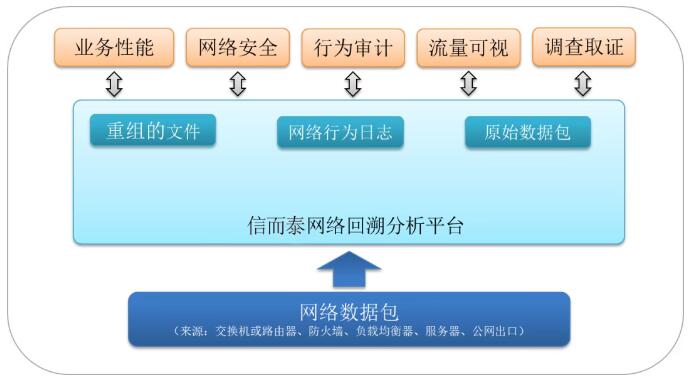 信而泰網絡回溯分析平臺實現(xiàn)了軟件和硬件的完美結合,在單一的硬件平臺上實現(xiàn)了網絡全流量采集分析和留存,實時網絡及應用性能監(jiān)測和調查取證一體化解決方案,滿足對應用程序及其支持基礎架構的性能進行可視化管理、故障排除和優(yōu)化、安全事故早期發(fā)現(xiàn)、內容審計和調查取證的需求。