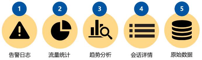 基于五個核心功能引擎,提供數(shù)據(jù)查詢和報表服務,提供歷史分析數(shù)據(jù),網絡原始數(shù)據(jù)包,告警日志和應用內容等類型數(shù)據(jù)的調查取證。