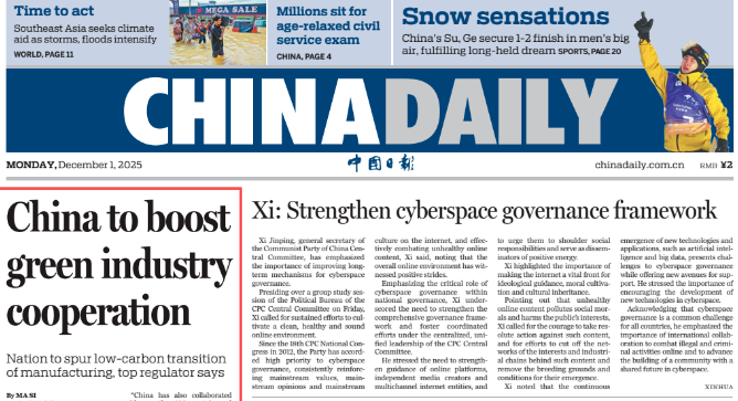 《中國日報》刊發(fā)李樂成英文署名文章:加快中國制造綠色低碳轉(zhuǎn)型 促進(jìn)全球可持續(xù)發(fā)展